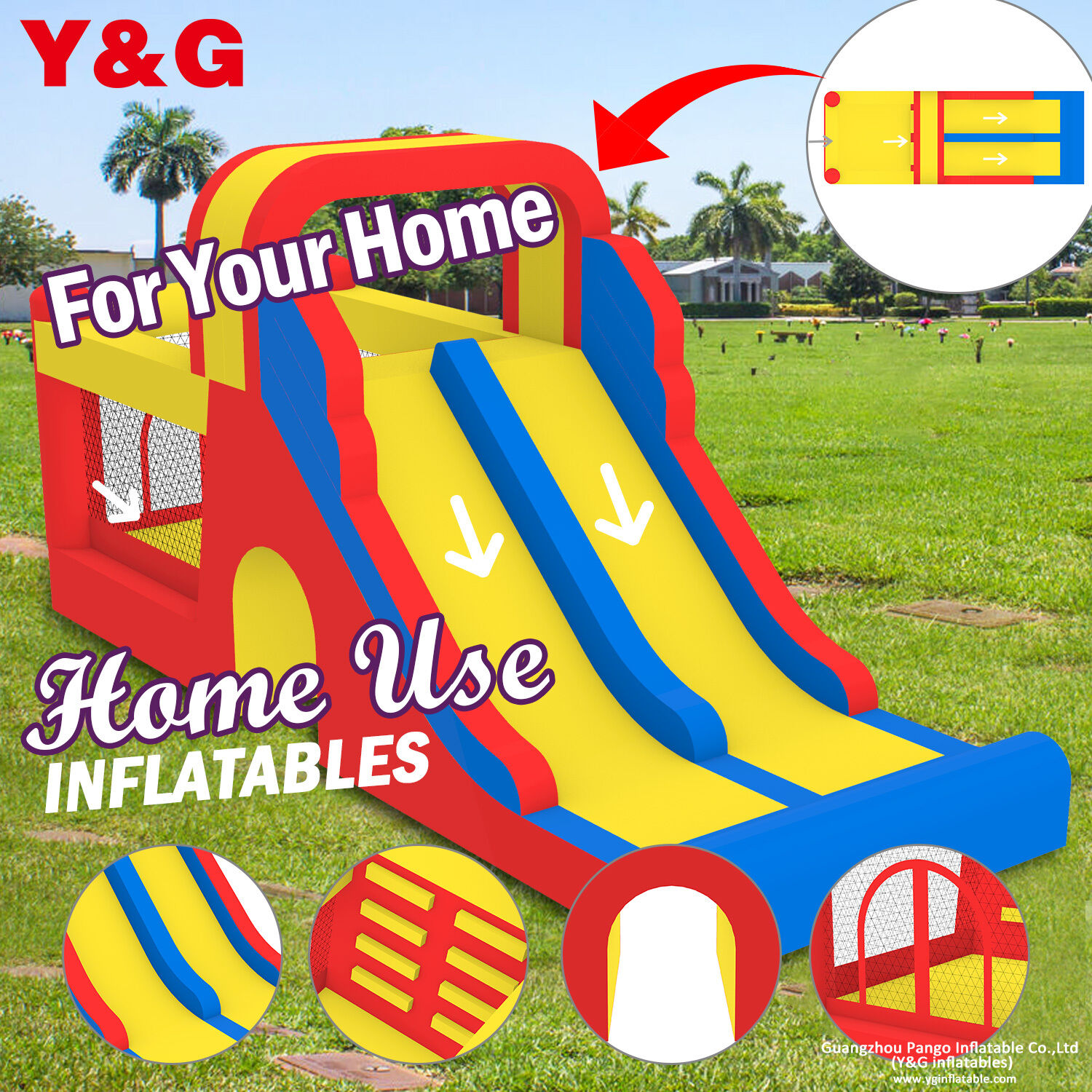 Inflatable bouncers and water slides from Y&G will make your kids screamed with delight! And you will love them too, because they are easy to inflate,quick to release and convenient to store in unfriendly weather. Get ready to be the most popular house on the block with these lovely toys and encourage kids to get hopping and bouncing all summer long.
